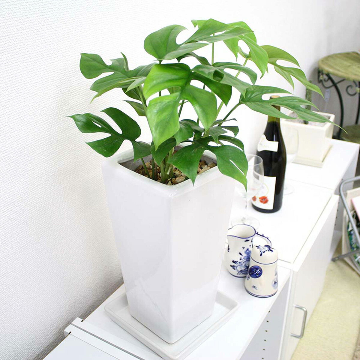葉の形もかわいい!ヒメモンステラ 6号 ホワイトスクエア陶器鉢【※北海道・沖縄・離島のお届け不可】 入金確認後、注文内容確認画面の【注文者情報】に記載の住所に60日以内に発送いたします。